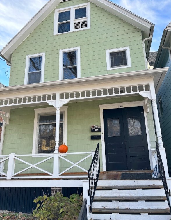 This house has been remodeled with wood floors, new paint and new appliances. Porch. Parking available behind the house.